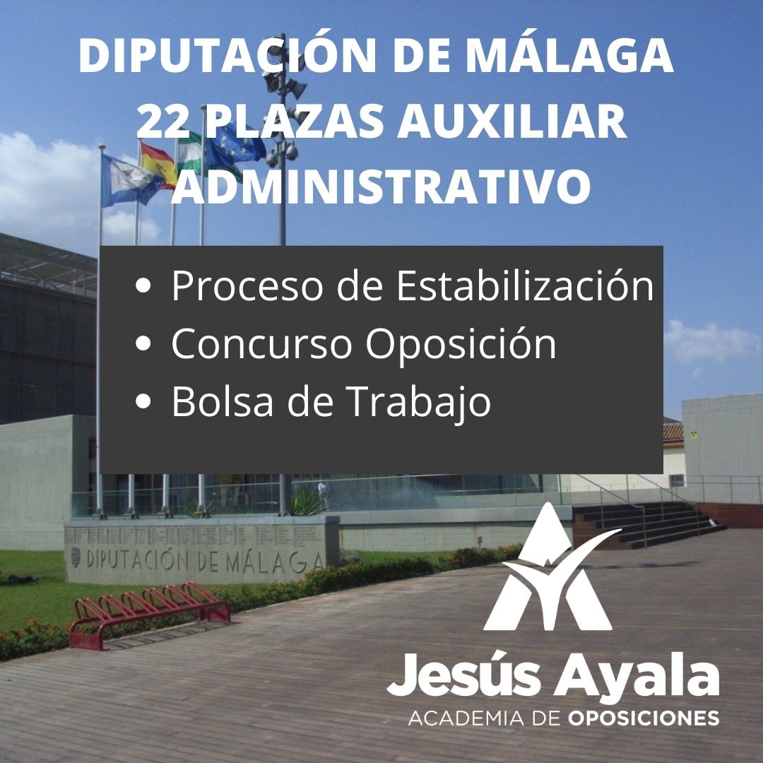 Se han publicado en el BOP de Málaga de 8 de noviembre de 2022 las Bases de la Convocatoria de, entre otras, 22 PLAZAS de Estabilización de AUXILIARES ADMINISTRATIVOS de la Diputación de Málaga.