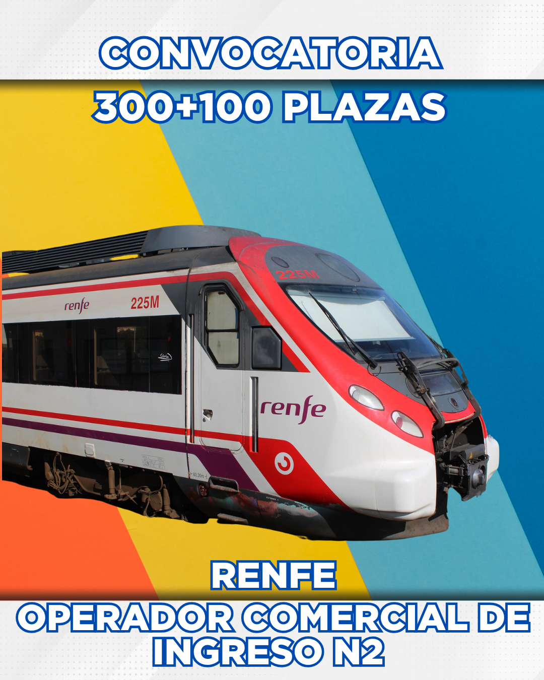 En el día de hoy se ha publicado convocatoria para 300+100 plazas de Operador comercial de entrada N2 de RENFE.