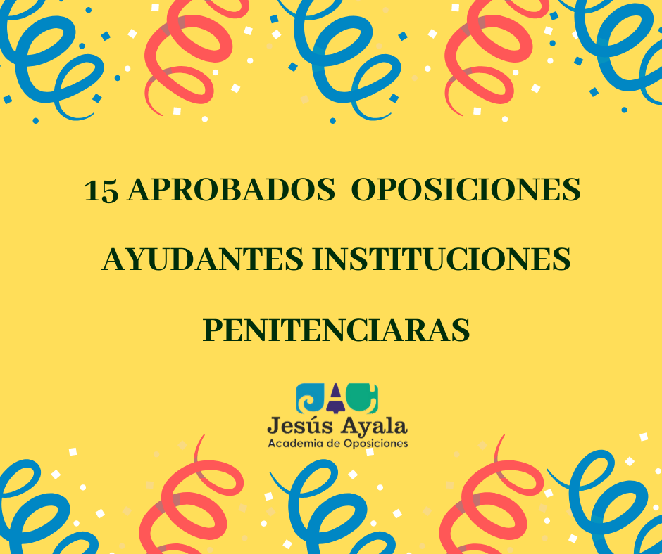 Queremos dar la enhorabuena a nuestros alumnos/as de la Academia Jesús Ayala, que han aprobado y han conseguido una plaza en la administración del Estado, en la especialidad de Ayudantes de Instituciones Penitenciarias.