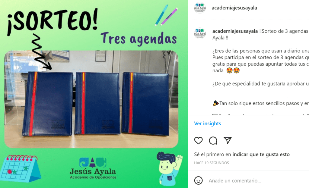 Tal y como dicen las bases del sorteo, los 3 ganadores/as serán premiados con una agenda personalizada de Academia Jesús Ayala, totalmente gratis, sin ningún tipo de gasto para el ganador/a.