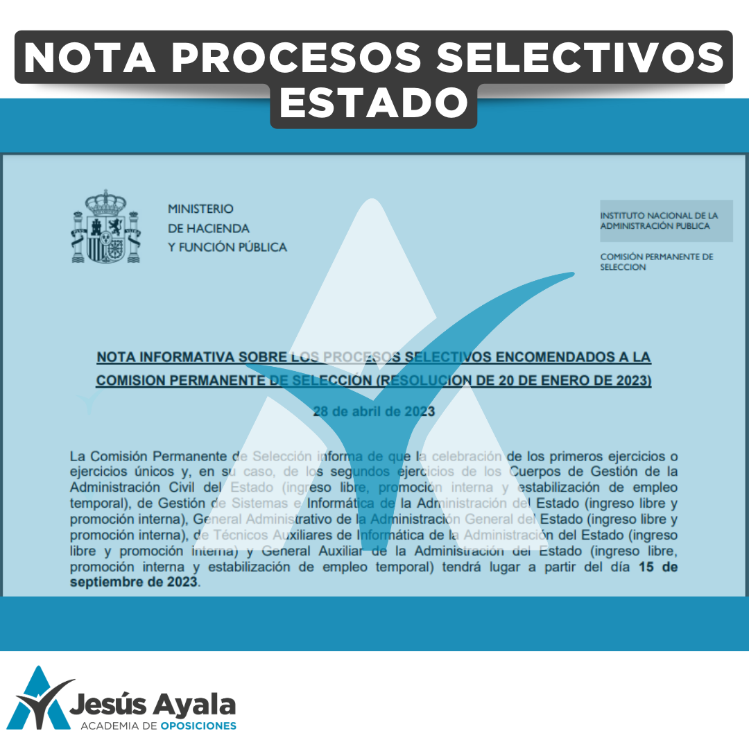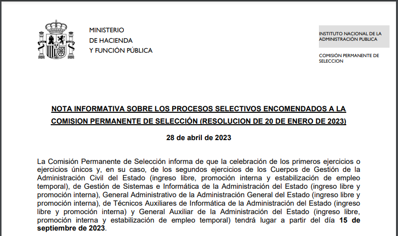En el día de hoy se ha publicado en el INAP nota informativa que afecta a los exámenes de los cuerpos generales del Estado, entre ellos, auxiliares administrativos, administrativos, gestores y técnicos auxiliares de informática.