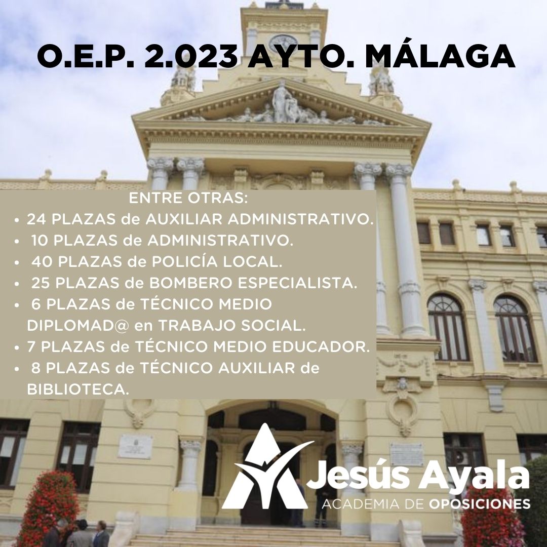 Se ha publicado en el BOP de Málaga de 15 de noviembre la OEP del Ayuntamiento de Málaga aprobada por la Junta de Gobierno Local para el año 2023, para cuya composición se ha llegado al máximo de la tasa de reposición en todos los casos. Se compone de 179 plazas, de acuerdo a la siguiente relación: