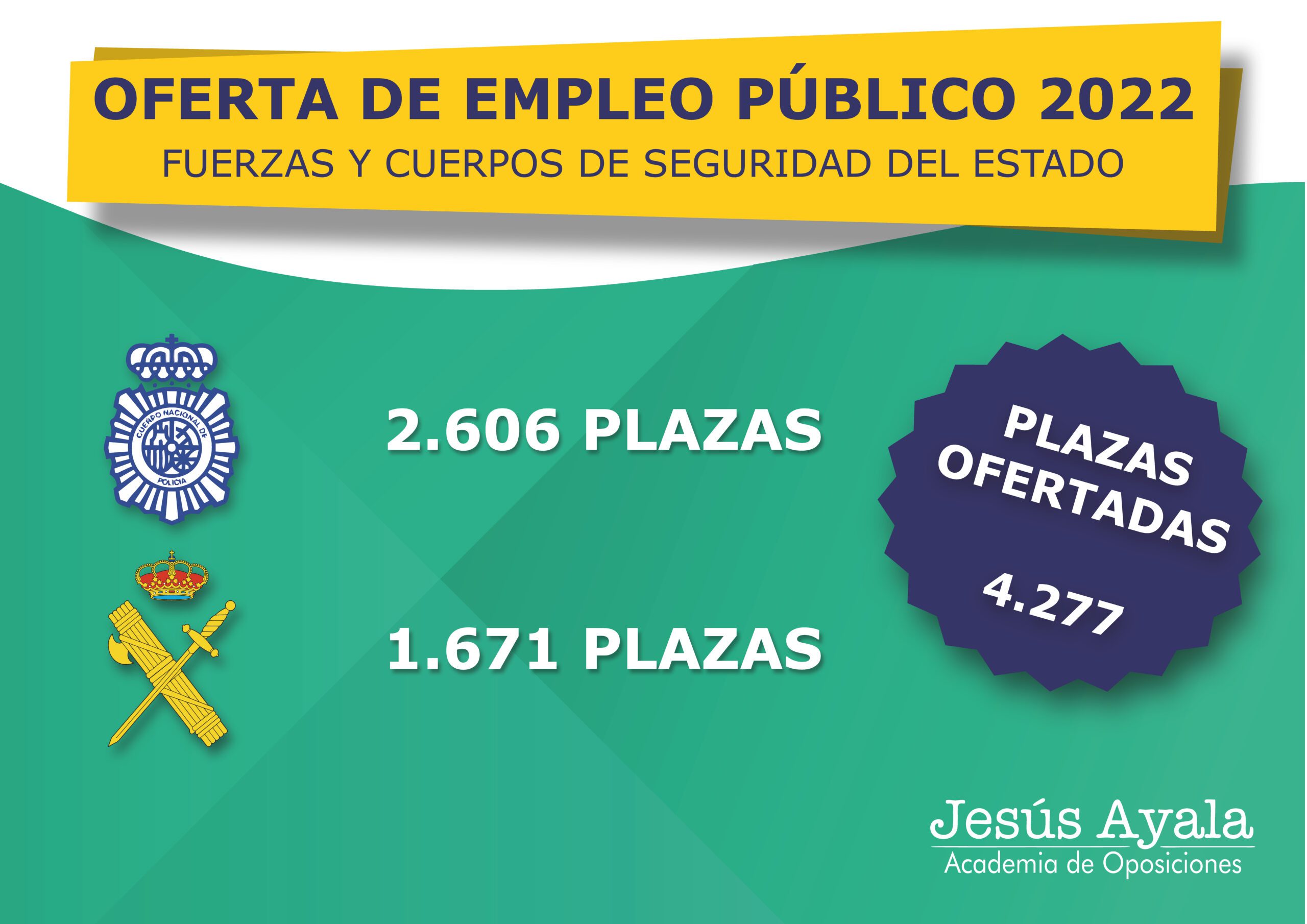 Las plazas Ofertadas ascienden a 4.277 que se distribuyen entre los dos cuerpos, Policía Nacional : 2.606 plazas y Guardia Civil: 1.671