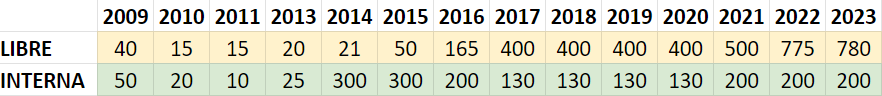 EVOLUCIÓN DE LAS CONVOCATORIAS EN LOS ÚLTIMOS AÑOS: