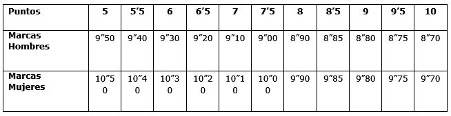 • Obstaculice a otro opositor.• Se salga por la parte interna de la cuerda de la pista.• Realice dos salidas nulas.• Las recogidas en el Reglamento de la Federación Internacional de Atletismo.• El tribunal de la oposición será asesorado por jueces de la Federación Andaluza de Atletismo que realizarán el control de los tiempos de la prueba.