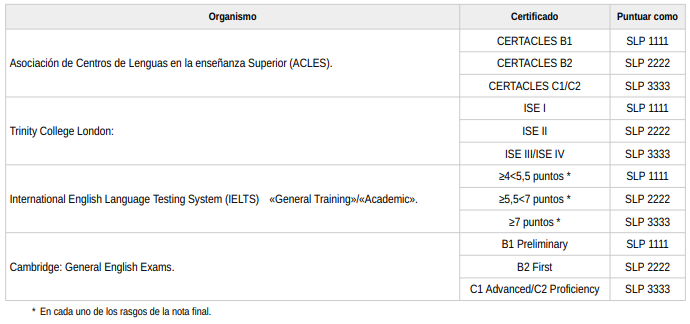 El nivel a puntuar corresponde a la mínima calificación obtenida en cualquiera de las destrezas, con independencia del nivel global que figure en la certificación que se aporte y se deberán haber superado todas las destrezas de que conste dicha certificación.