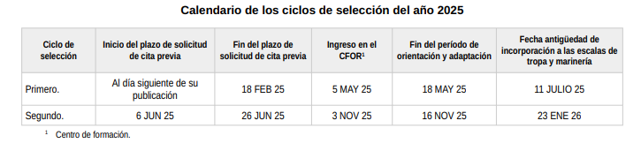 El proceso de selección se realiza en el Centro de Selección correspondiente, según tu provincia de residencia. Para poder optar a la realización de las pruebas de oposición en cada uno de los ciclos ha de solicitarse cita previa personalmente en las Secretarías Generales de las Delegaciones de Defensa o en las Áreas de Reclutamiento u Órganos de Apoyo de las Subdelegaciones de Defensa o en las Oficinas Delegadas u Oficinas o puntos de información dependientes de las Subdelegaciones de Defensa.